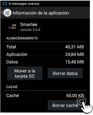 5. Leeren Sie den Cache der Smartee-App: du musst tun genauso als in den vorherigen Fällen. Wird Einstellungen dann vom Gerät Anwendungen und auswählen Smartee. Sobald Sie drinnen sind, wählen Sie aus "Cache leeren".