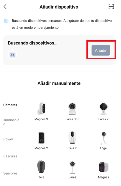Wenn das Gerät auf diesem neuen Bildschirm erkannt wird, erscheint oben das Menü „Geräte erkennen …“ und rechts die Schaltfläche „Hinzufügen“. Um es zu synchronisieren, tippen Sie auf „Hinzufügen“ und befolgen Sie die Schritte.