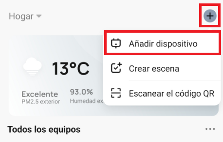 Es erscheint ein Menü, in dem Sie „Gerät hinzufügen“ auswählen müssen.