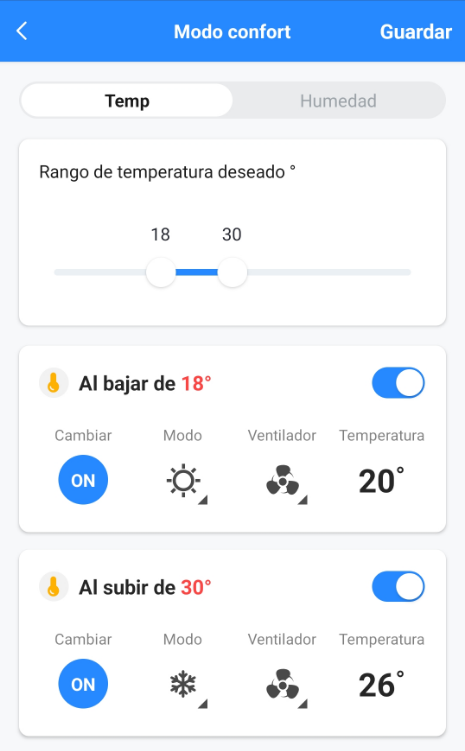Hier wird die Min/Max-Temperatur und/oder Luftfeuchtigkeit eingestellt, sodass das Gerät automatisch mit den eingestellten Werten aktiviert.