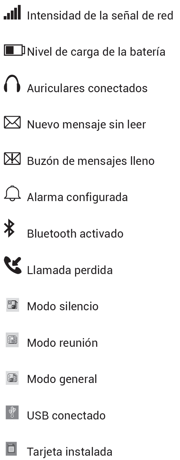 Nachfolgend zeigen wir Ihnen alle Symbole, die Sie auf dem Bildschirm Ihres SPC MAGNUS-Telefons sehen können, und was jedes einzelne bedeutet.