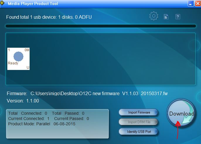 - Drücken Sie „Download“, um die Firmware in das Gerät zu laden.