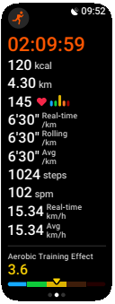 Nach Beginn der Aufzeichnung können Sie je nach Sportart Details anzeigen, indem Sie über den Bildschirm wischen, um alle Informationen zu sehen.