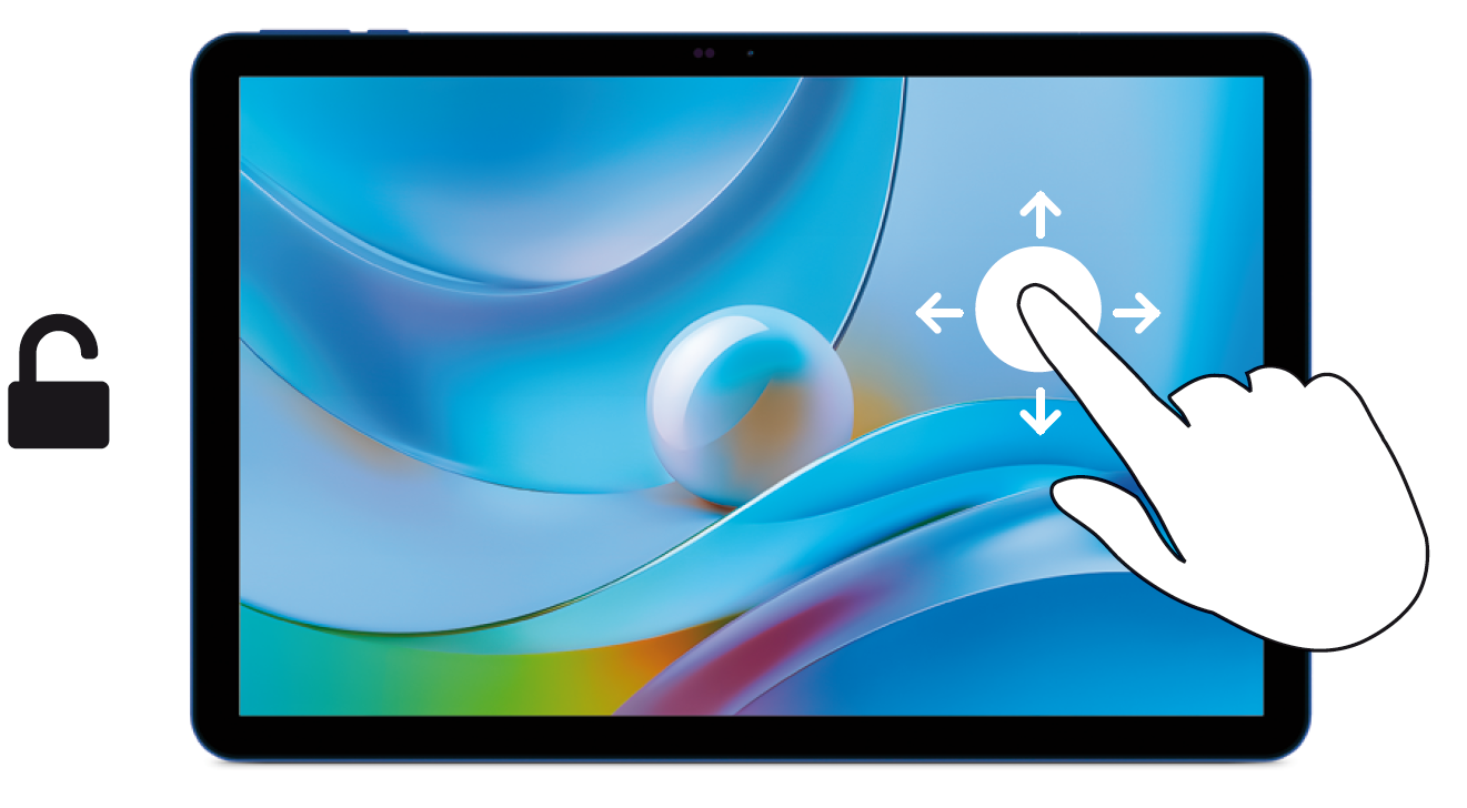 Das Entsperren deines Tablets ist ganz einfach: Wische einfach mit dem Finger über den eingeschalteten Bildschirm, wie unten gezeigt.