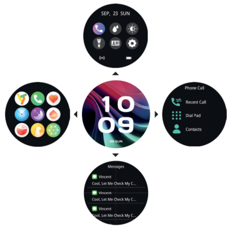 Um durch die verschiedenen Bildschirme deiner Uhr zu navigieren, kannst du vertikal, horizontal wischen und/oder tippen.