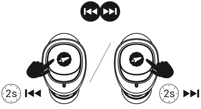 Halten Sie den rechten Ohrhörer gedrückt, um das vorherige Lied abzuspielen.