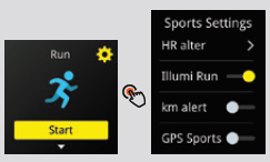 Für umkehren, wischen Sie auf einem beliebigen Bildschirm nach rechts. Das folgende Beispiel zeigt, wie Sie von einer bestimmten Sportart (in diesem Fall Laufen) zum Hauptsportmenü zurückkehren.