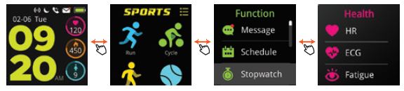 Vom Hauptbildschirm Ihres Smartee Sport aus können Sie zur Verwaltung aller Funktionen navigieren