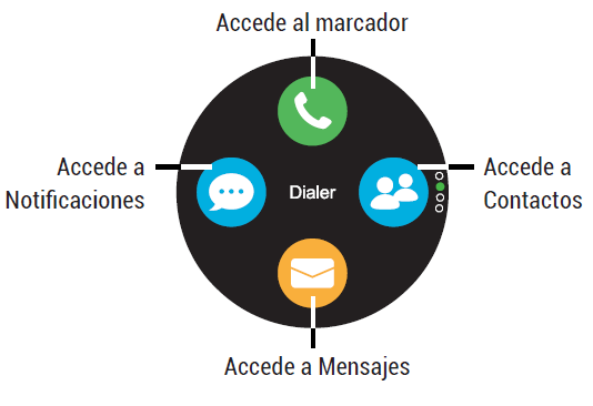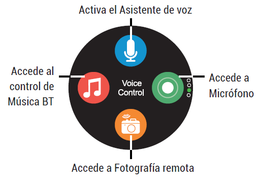 Im vertikalen Menü des Smartphones finden Sie schnellen Zugriff auf alle Funktionen der Uhr. Um einige nutzen zu können, muss die Smartwatch mit Ihrem Smartphone verbunden sein.