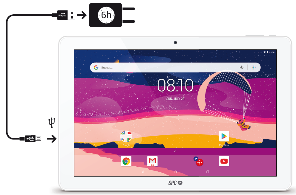 Wenn der Akku stark entladen ist, kann es vorkommen, dass Ihr Tablet nach dem Anschließen des Ladegeräts an das Stromnetz mehrere Minuten bis 2 Stunden benötigt, um mit dem Laden zu beginnen. Keine Sorge, nach dieser Zeit erreicht die Batterie den Mindestladestand zum Starten.