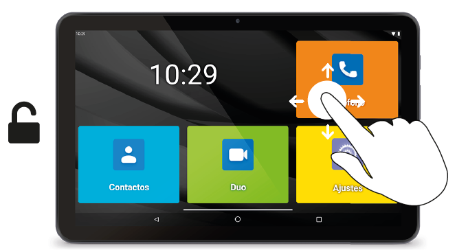 Ihr Tablet verfügt standardmäßig über ein sehr einfaches Entsperrsystem, das darin besteht, wie im folgenden Bild mit dem Finger darüber zu streichen.