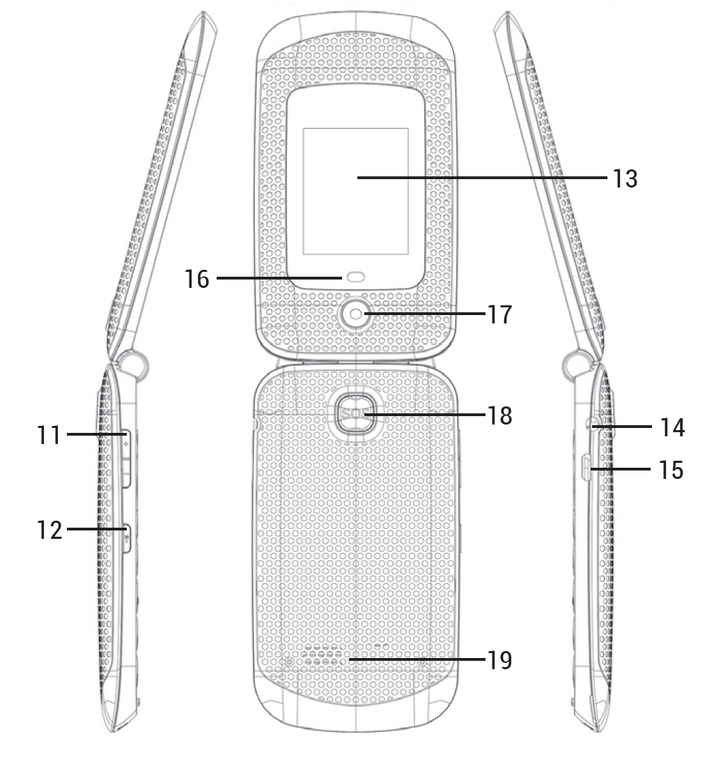 12. Flashlight/flash key - press and hold to activate/deactivate flashlight or flash.