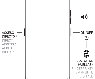 - Fingerprint: this button also has the function of fingerprint reader. To set it up, go to Settings>Security>Face and fingerprint unlock.