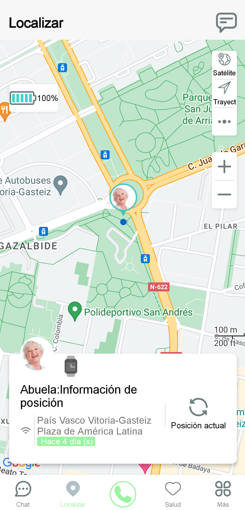 This screen defines the security perimeter of the watch. Once defined, exceeding this perimeter will trigger a notification to the caregivers alerting them of the incident.