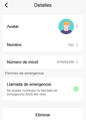 - Emergency call (SOS): It can be selected that the contact is for emergency.