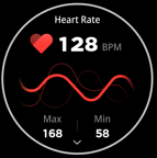 You can check your current heart rate and view the graph of historical heart rate values. For a correct measurement the watch must be correctly adjusted to your wrist.