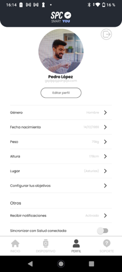 In the user profile, you can configure all the necessary information to ensure your results are as accurate as possible. You can also modify your daily goals, change your password, or delete your account.