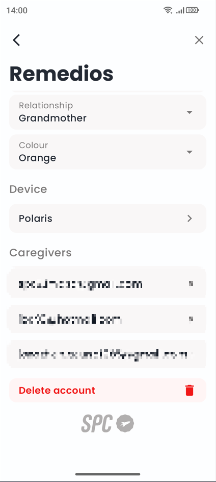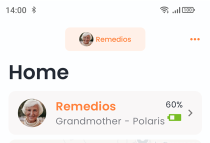 Access the cared-for person menu by clicking on the name displayed at the top: