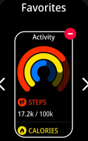 By swiping from right to left, you can find the device's default shortcut screens: Activity, Sleep, Heart Rate, Media Player, and Weather. Five favorite screens are allowed. If you want to delete a screen, press and hold it and tap the (-) icon. By tapping Add (+), you can add screens.