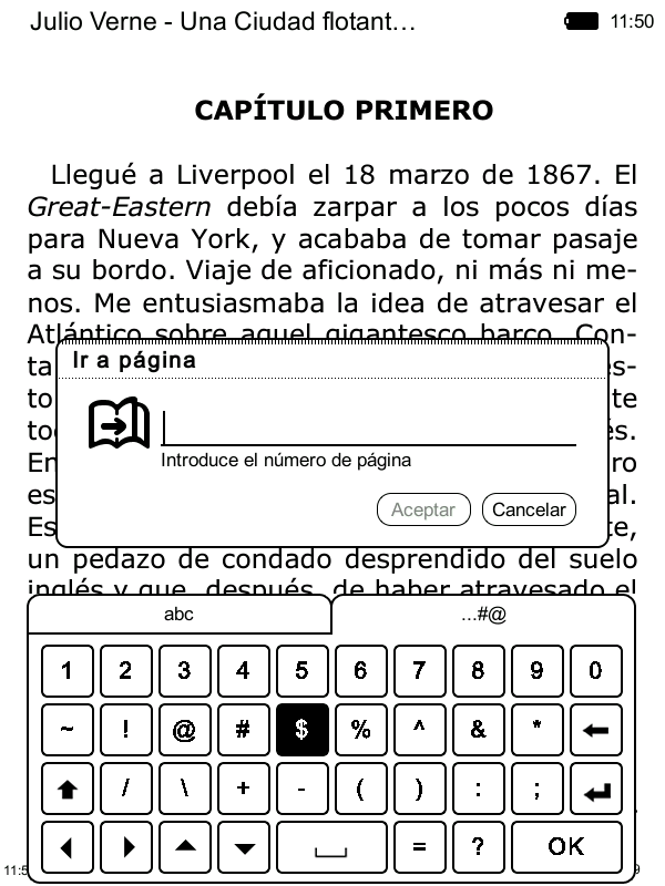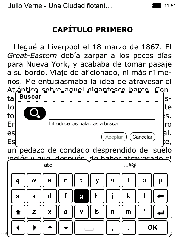 In the image you can see the text is perfectly adjusted to the screen size of your Dickens, always accompanied by the progress bar, where you can get information about your reading process, the battery and the time.