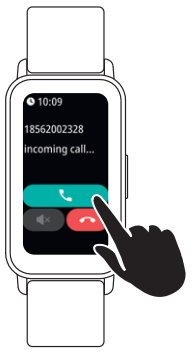 When you receive a call, the watch will notify you on the screen, with sound and vibration (depending on the settings), and you can answer directly from the watch.