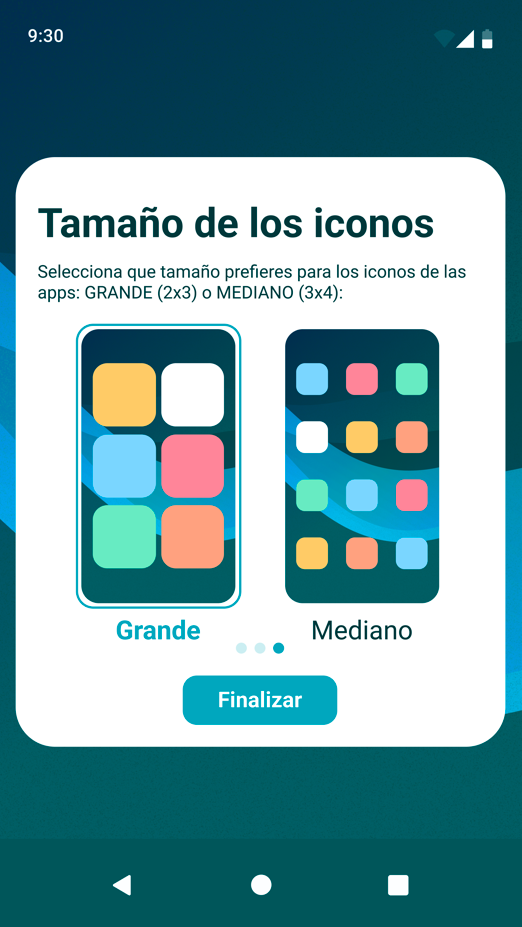 You'll also get a short introduction, where you can select the font size you want to view your device with, as well as the grid type you want to see the SPC Easy Mode icons in. There are 2 options to choose from: Large (3x2 grid), and Medium (4x3 grid):