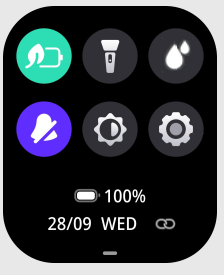 By swiping down from the top on the main watch face, you can check the shortcuts.