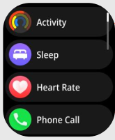 By swiping from left to right on the home page, you can access the shortcut menu of all the watch's functions.