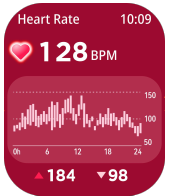 The measurement is taken manually by tapping this screen. Note that you must remain still during the measurement and the watch must be worn firmly on the wrist.