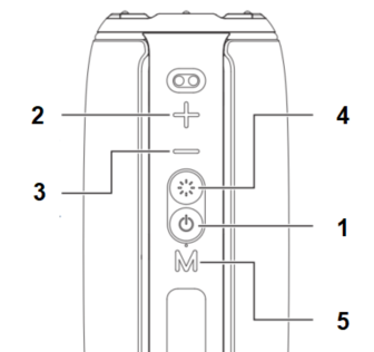 To switch between Bluetooth, SD, AUX and USB modes you must briefly press button 5 (M, Mode).