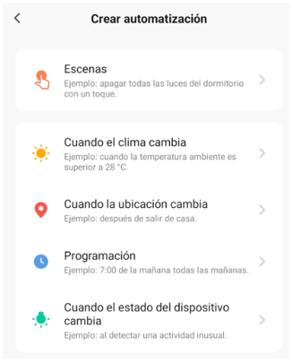 Dentro de esta pantalla, en la parte superior derecha, encontraremos el botón “+”, pulsaremos y nos saldrán las opciones de automatización.