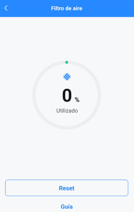 Nos muestra la vida útil estimada del filtro del aire y recuerda una limpieza periódica.