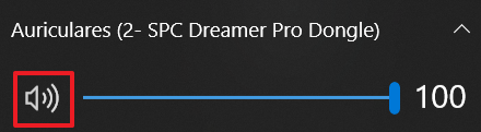 * Si el led azul del dongle no parpadea o si no consigues realizar el emparejamiento, pulsa en el icono del altavoz que tienes en la parte de abajo a la derecha de la barra de tareas y pulsa 10 veces en el icono del altavoz, activando y desactivando el audio: