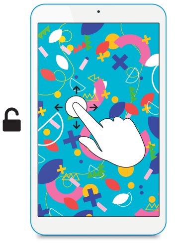 Tu tablet incorpora por defecto un sistema de desbloqueo muy simple que consiste en deslizar el dedo por encima como en la siguiente imagen.