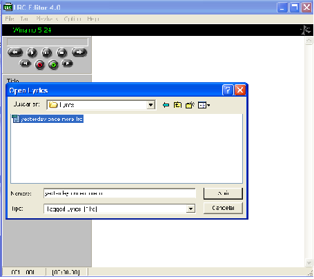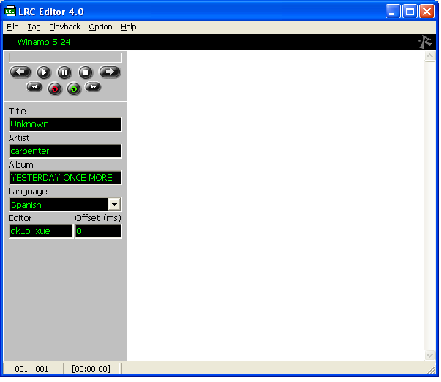 - Abre el editor de Lyrics LRC Editor 4.0. Se mostrará la siguiente ventana.