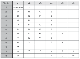 Tabla de ayuda para el teclado alfanumérico