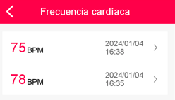 Pulsando en el botón superior derecho se accede al detalle del histórico de últimas mediciones.
