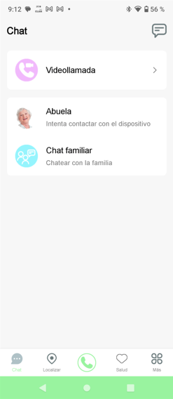 3. Chat familiar: Es un chat grupal, del Senior con todos los demás miembros de la familia/cuidadores.