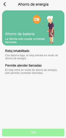 No permite el apagado desde el reloj, aparece un mensaje de advertencia en el reloj "¡No apagues!”. Solo se podrá apagar de manera remota a través de la aplicación.