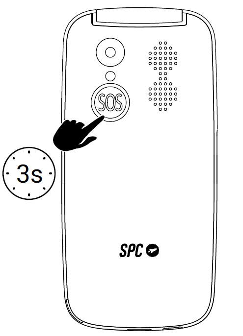 Durante una emergencia, mantén pulsada la tecla SOS durante unos segundos. El terminal emitirá un sonido de alerta (bocina) y se iniciará el ciclo de llamadas. El teléfono activará el altavoz manos libres y llamará a los números de emergencia en orden consecutivo, enviando también el mensaje de Asistencia (SOS) mediante SMS. Si no hay respuesta, saltará al siguiente número hasta que uno de ellos responda; este ciclo se repetirá 3 veces.