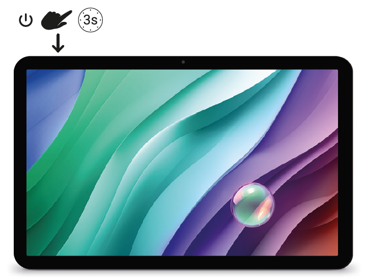 Para encender tu GRAVITY 5 SE, por favor, pulsa durante 3 segundos en la tecla de encendido que encontrarás en la parte superior izquierda de la Tablet.