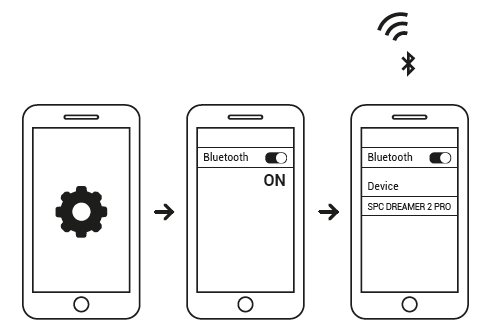 Ahora, ve a los ajustes del dispositivo al que quieras conectar tus auriculares, activa el Bluetooth y busca en la lista de los dispositivos disponibles tu SPC DREAMER 2 PRO.