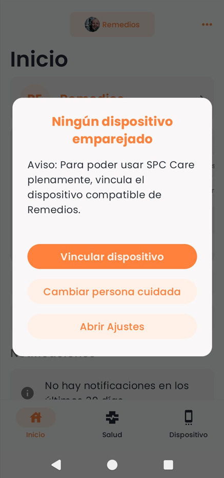 Una vez hayas creado a la persona cuidada, podrás vincular un dispositivo.