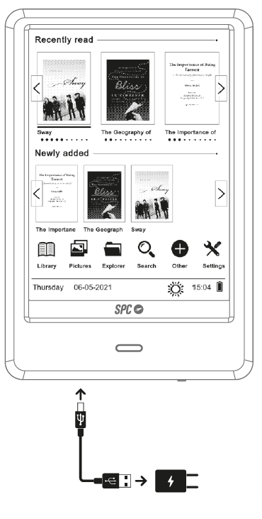 Te recomendamos usar el cable USB que encontrarás entre los accesorios suministrados en la caja y conectarlo a un cargador USB de tu móvil o tablet (no suministrado). ¡Paciencia! Si el producto se ha quedado completamente sin carga, le costará iniciar unos minutos. Lo mejor es que lo pongas a cargar durante 1hora. Pasado ese tiempo, si no inicia, comprueba con otro cable USB. En caso de que esto tampoco funcione, pasa al punto 2.