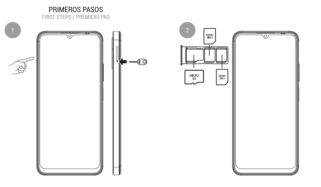 El formato de SIM es NanoSIM (el más pequeño). Asegúrate de meter las tarjetas en la posición indicada en la figura.