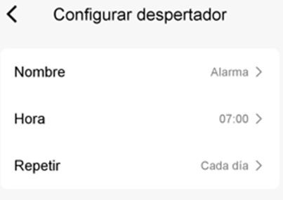 Para añadir una alarma, pulsar “+”. Editar la alarma: