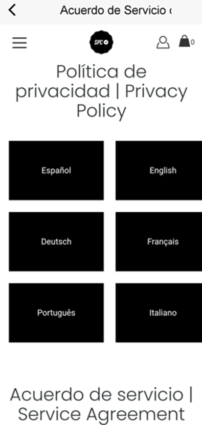 En estas secciones se accede a los detalles del Acuerdo de Servicio de Usuario, Política de Protección de Privacidad y Plan de Mejora de la Experiencia de Usuario.