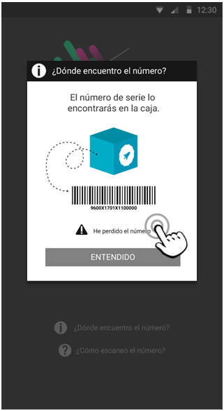 Aquí se muestra la información de dónde localizar ese código de barras necesario para el escaneado. Pero además, se incluye un nuevo apartado de ayuda que dice: "HE PERDIDO EL NÚMERO". Deberás pulsar ahí.