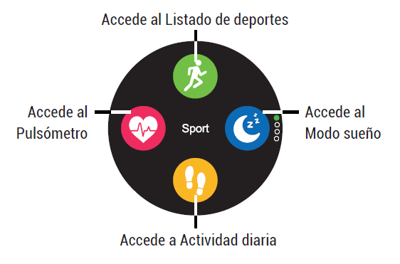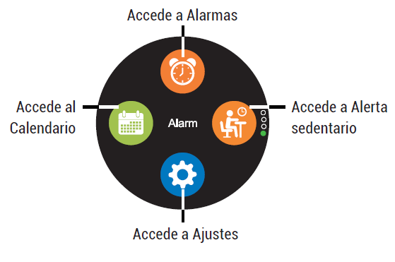 En el menú vertical del Smartphone, encentrarás accesos rápidos a todas las funciones del reloj. Para poder emplear algunas tendrás que tener el Smartwatch conectado a tu Smartphone.