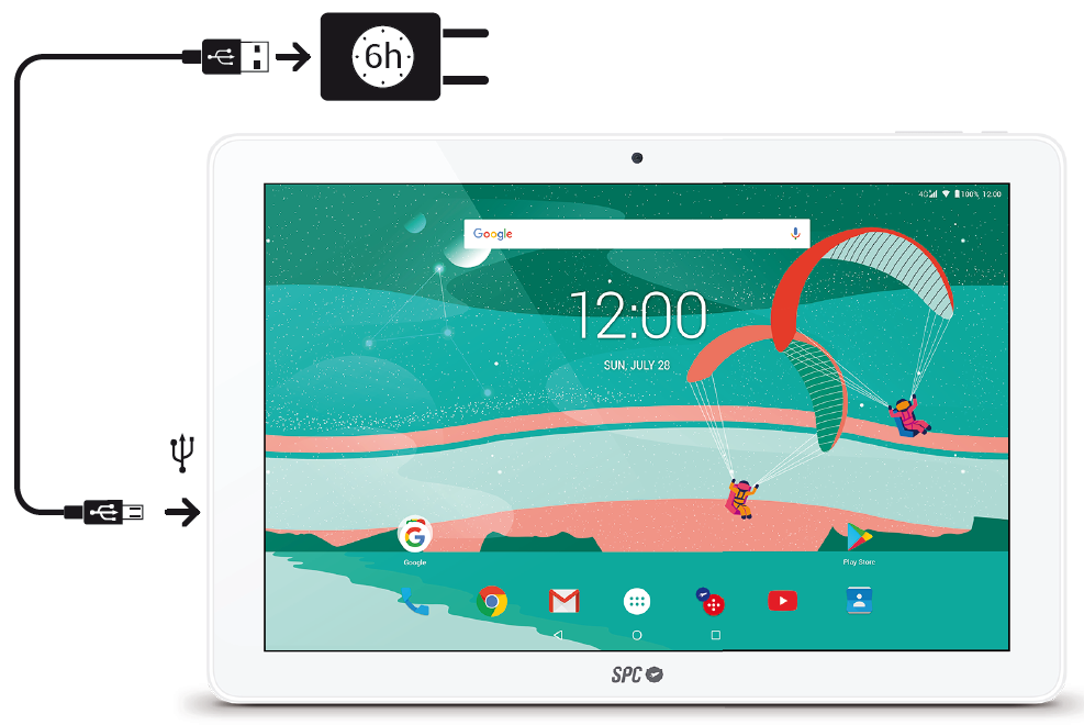 Puedes obtener más información sobre cómo cargar tu tablet en el apartado Encendido, carga y batería